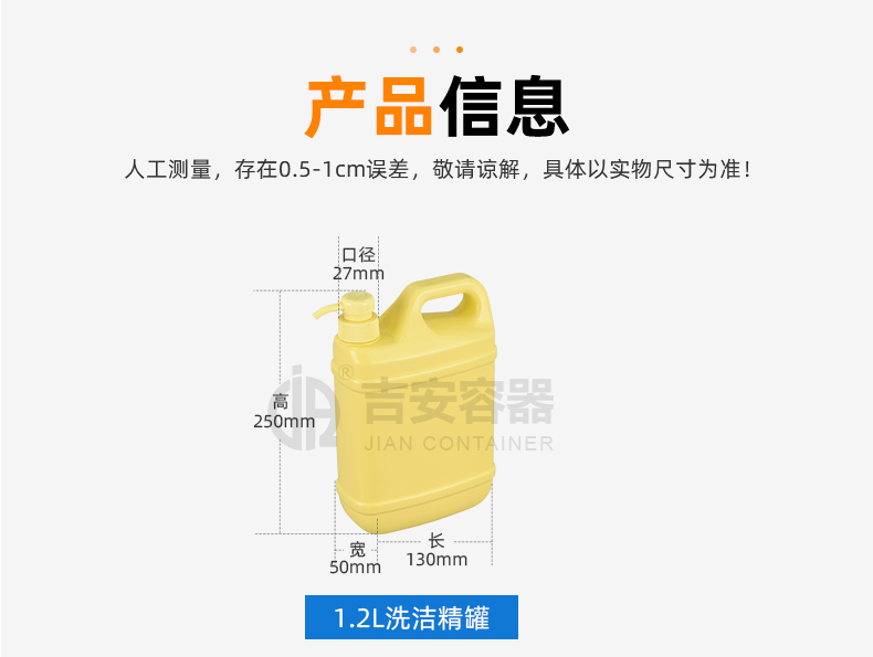 • 產(chǎn)品名稱:1.2L洗潔精罐(C305)
